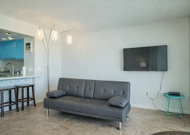 綺麗にリノベーションされたお部屋は海と同じ青色が基調。自然とお部屋がシンクロするレイハワイ不動産のプレミアムバケーションレンタルシリーズ。